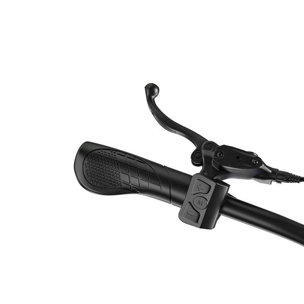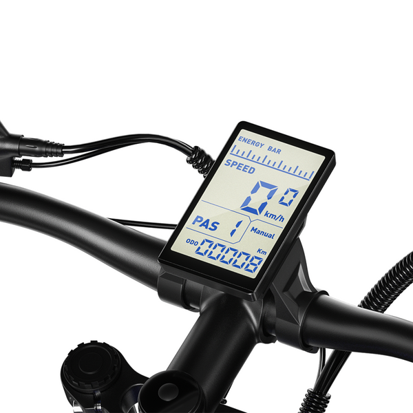 The MX03 is equipped with the KING-METER NOKEE-U series waterproof display. This display provides information on various aspects, including the total mileage traveled, the remaining battery level, the current speed, and offers speed settings ranging from 1 to 5. The display comes with three buttons that are conveniently positioned beside the left handlebar. These buttons are used to control different functions such as switching between the electric mode, the pedal assist mode, and turning the lights on or off.